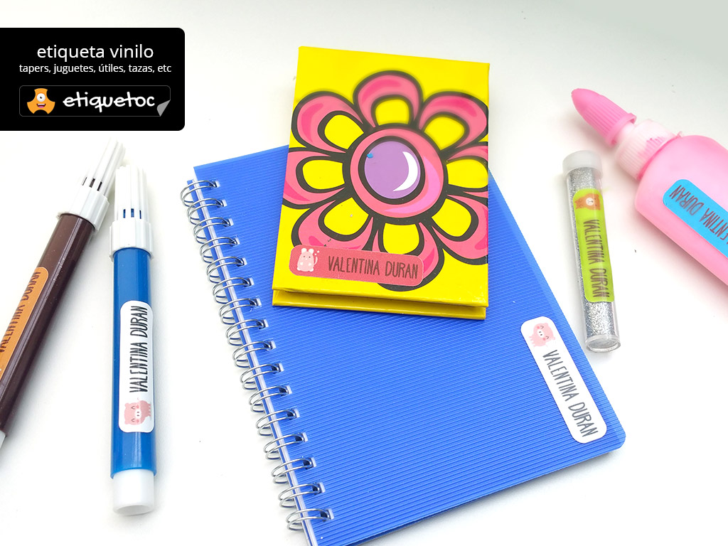 Con etiquetoc podes diseñar etiquetas personalizadas de la forma más rápida y simple. Las etiquetas son de dos tipos, vinílicas para en útiles escolares, tapers, cuadernos, etc y transferibles para utilizar en ropa, delantales, bolsos, etc.